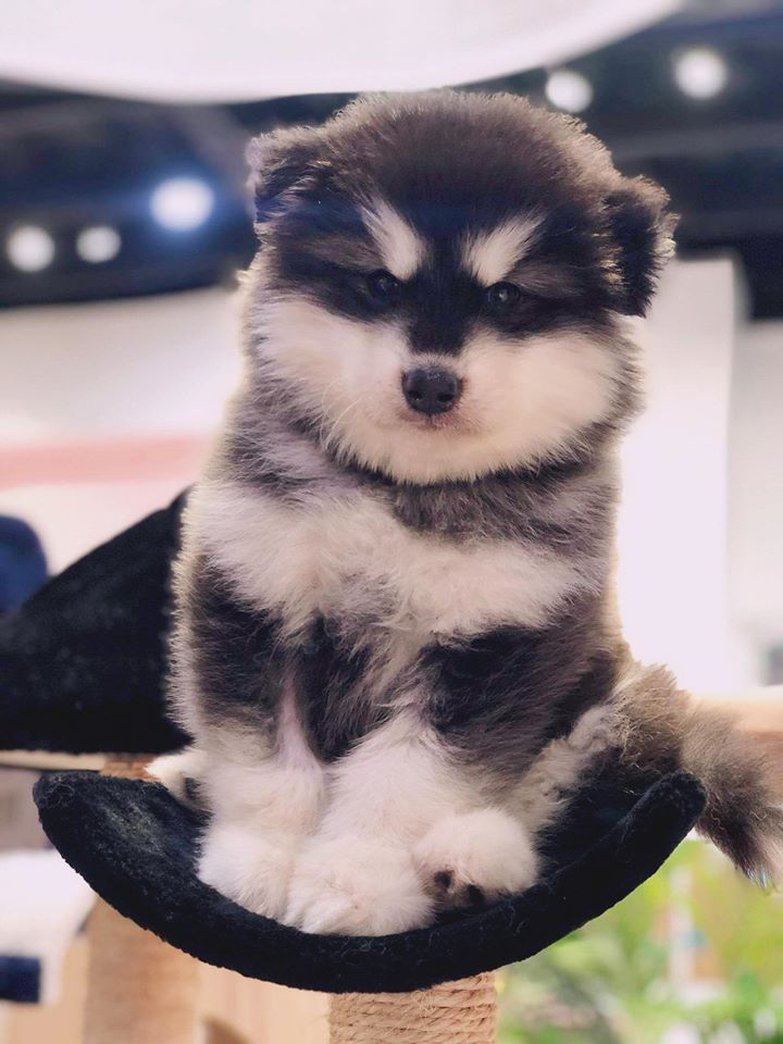 Chó Alaska Lông Đen Trắng Tai Cụp - ALK04